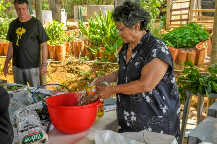 Durante a aula, Clara deu dicas de como utilizar a casca de ovo e a folha da mandioca em uma mistura nutricional e a folha da batata-doce no lugar da vagem, que costuma conter agrotóxicos. Além disso, a nutróloga ensinou como fazer uma multimistura para ser usada como suplemento alimentar que leva 70% de farelo de arroz e trigo, 15% de pó da folha de mandioca e 15% de gergelim, e o chamado torresmo de soja, com soja texturizada, óleo, gergelim, alho ou cebola em pó, folha de mandioca em pó e sal – receitas feitas sem a utilização de fogo.