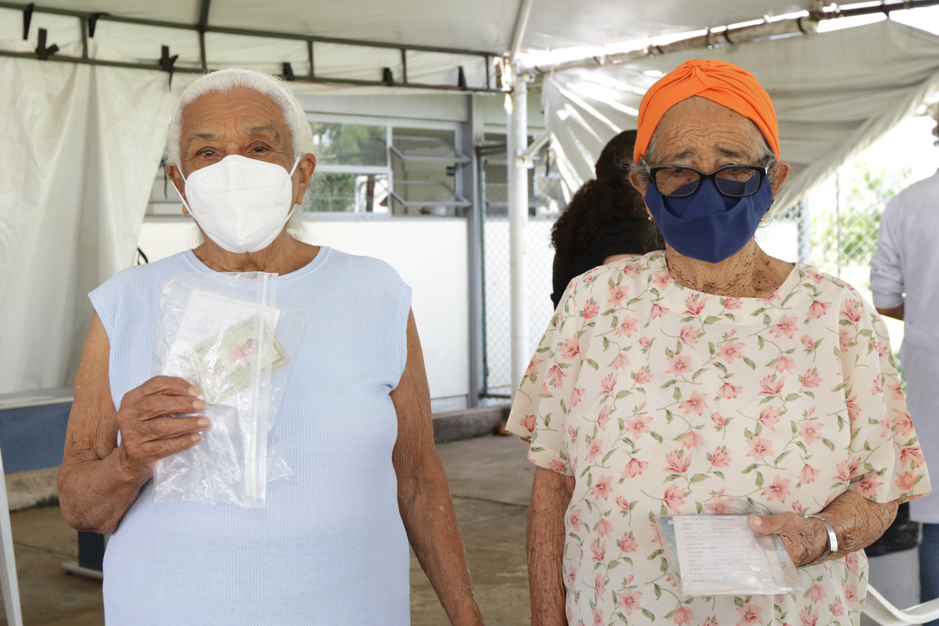Amigas há mais de 40 anos, as vizinhas Raimunda Brandão, 93 anos, e Idalina Anunciação, 87, foram à UBS 3 de Ceilândia garantir mais uma dose de proteção. A filha de Raimunda trabalhava na unidade, mas faleceu ano passado vítima de covid-19. “A vacina nos salva. Se tiver que tomar mais, eu tomo quantas precisarem”, ressalta Raimunda.