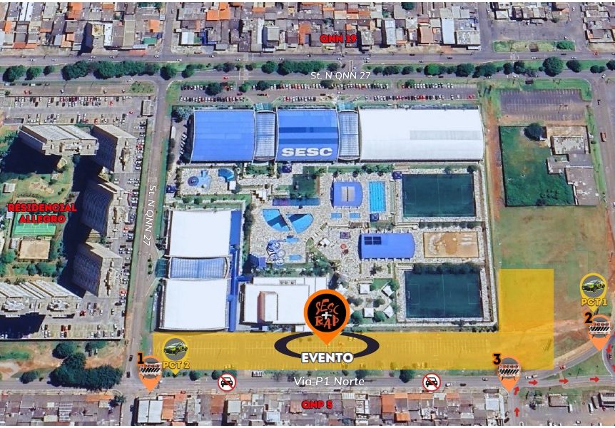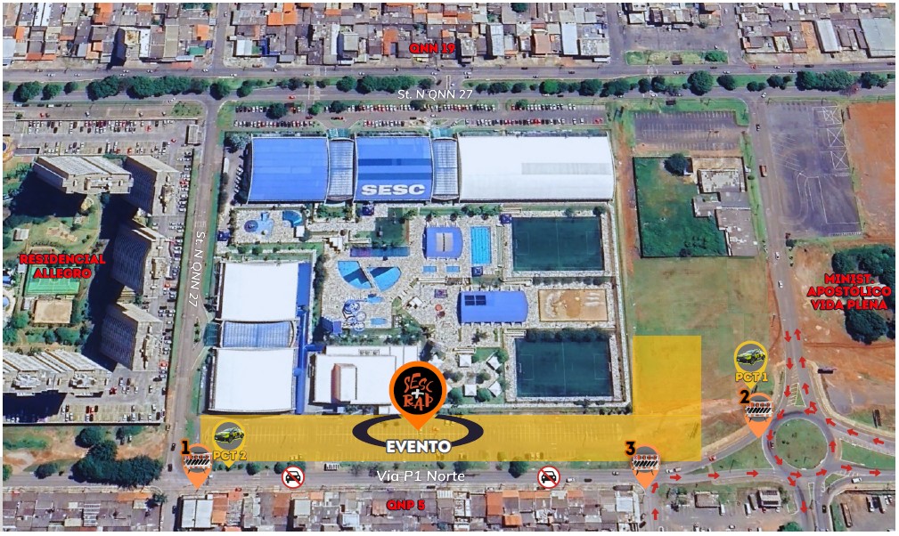 Ainda no sábado, a população de Ceilândia vai receber o Sesc+RAP & Sesc Tradições Juninas, na QNN 27 Área Especial. Por lá, os agentes de trânsito farão o fechamento de três pontos de acesso à P1 Norte, na altura do Sesc, a partir das 14h, impedindo a circulação de veículos à área reservada à saída de emergência.