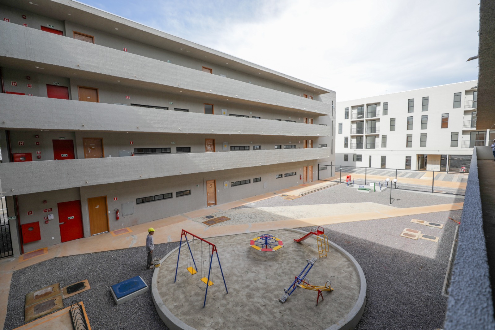 Destinado a atender as demandas habitacionais da região, os apartamentos têm 56,69 m² com dois quartos, sala, cozinha, banheiro, área de serviço independente e varanda, além de uma estrutura para atender os moradores na área comum, com bicicletário, parque infantil e um salão de festas.