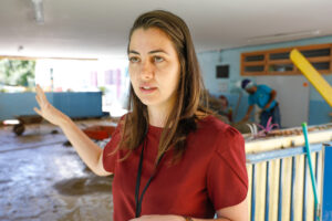 “Esse é o único pátio coberto da escola. É onde fazemos a recepção das crianças e já havia algumas cerâmicas quebradas e o teto estava com infiltração. A nossa escola tem quase 60 anos e esse era um pedido dos pais que a Secretaria de Educação viabilizou com a verba de manutenção”, revela a diretora do JI 404 Norte, Renata Pena.