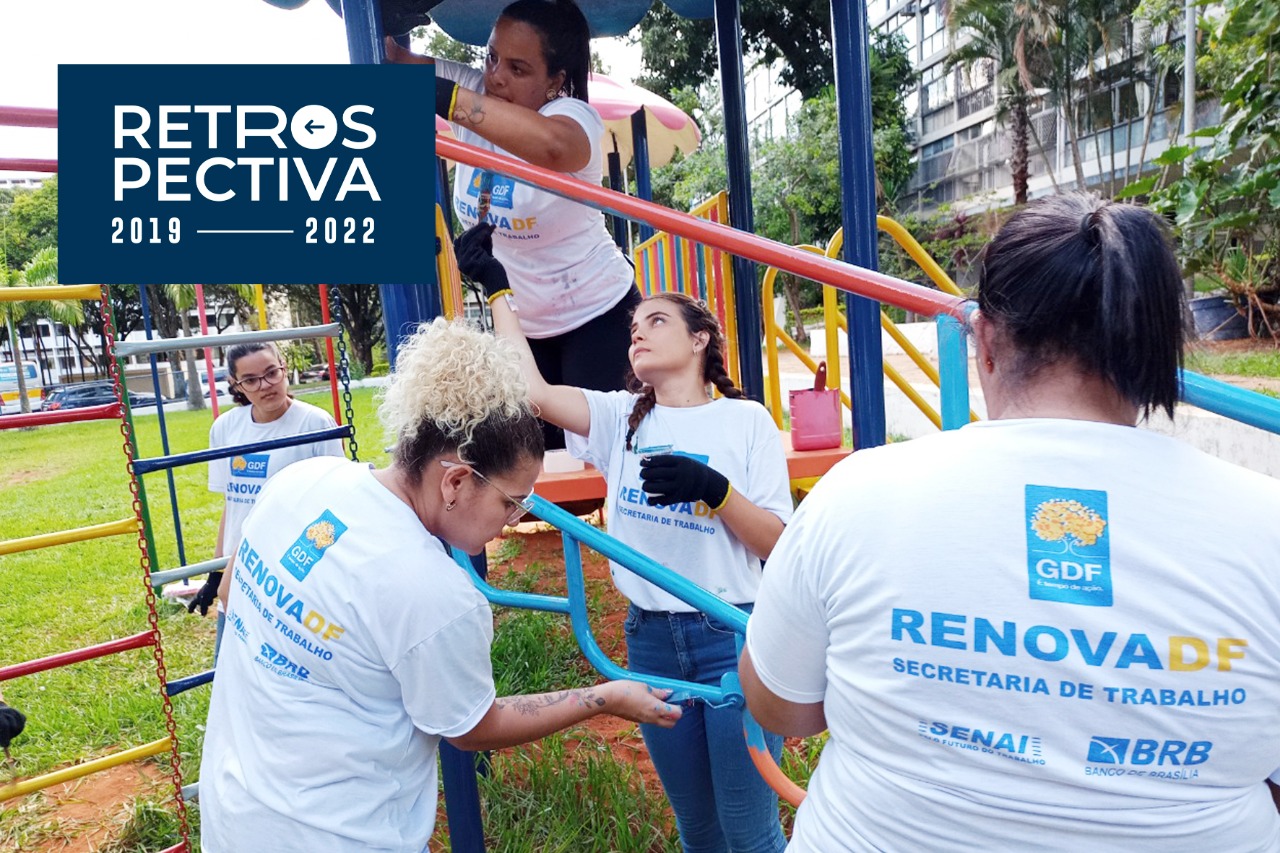 Outro projeto de destaque é o RenovaDF, que consiste em um programa de qualificação profissional da Secretaria de Trabalho em parceria com a Secretaria de Governo e as administrações regionais, sendo que os cursos são de iniciação profissional e aplicados pelo Serviço Nacional de Aprendizagem Industrial do Distrito Federal (Senai/DF), com duração de 240 horas. Os alunos recebem capacitação profissional, com noção básica na área de construção civil, com aulas de forma presencial e, enquanto se qualificam, recuperam os espaços públicos de nossa cidade. Com investimento de R$ 50,7 milhões, foram certificados 11.171 alunos.