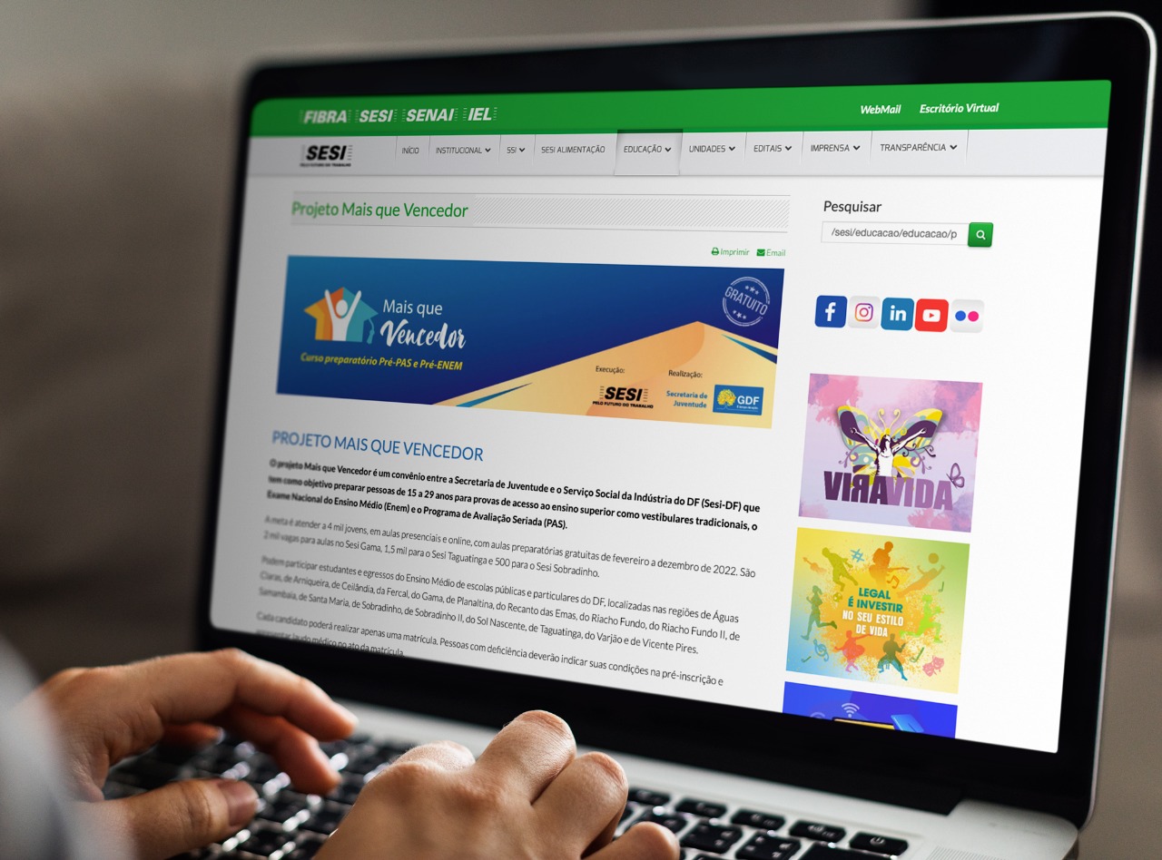 Estão abertas as matrículas para 1,2 mil vagas remanescentes do projeto Mais que Vencedor, que tem o objetivo de preparar pessoas de 15 a 29 anos para provas de acesso ao ensino superior como vestibulares tradicionais, o Exame Nacional do Ensino Médio (Enem) e o Programa de Avaliação Seriada (PAS). A iniciativa é um convênio entre a Secretaria de Juventude do Distrito Federal e o Serviço Social da Indústria do DF (Sesi-DF).