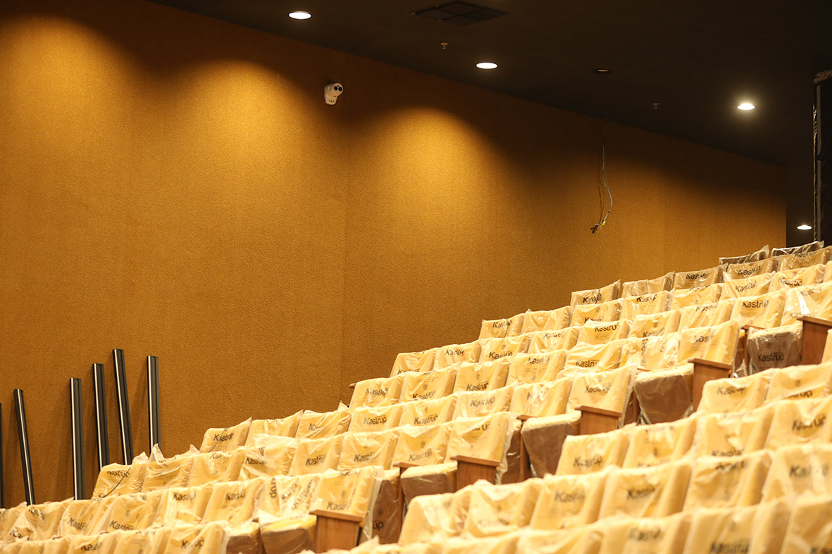 Além da troca das poltronas, a sala foi equipada com uma cortina d’água para contenção das chamas e sensores de fumaça