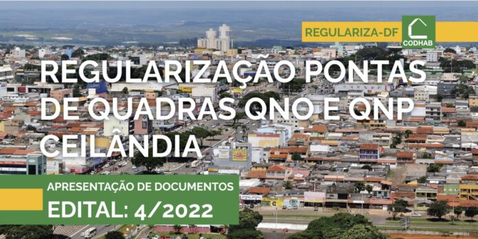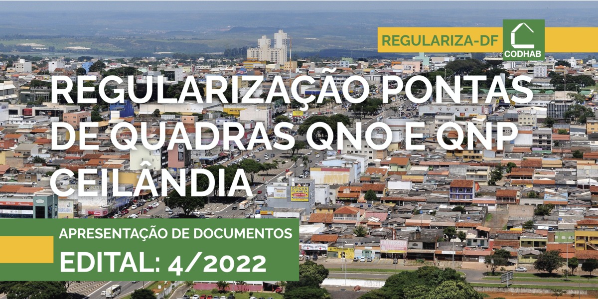 A Companhia de Desenvolvimento Habitacional do Distrito Federal (Codhab) convoca os ocupantes dos imóveis localizados nas pontas de quadra das QNOs e QNPs em Ceilândia para apresentarem documentação com vistas à habilitação para doação ou venda direta e posterior emissão do documento com o registro definitivo da propriedade.