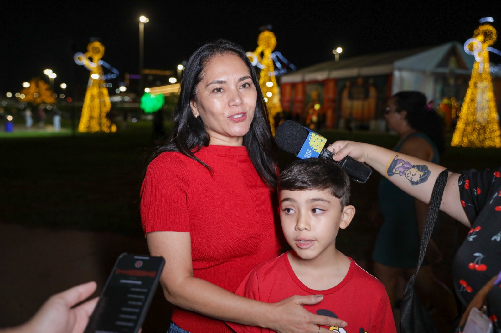 A inauguração do Nosso Natal, neste domingo (1º), foi marcada por queima de fogos, entrega da chave da cidade para o Papai Noel, e movimentação intensa na pista de patinação no gelo | Foto: Geovana Albuquerque/Agência Brasília