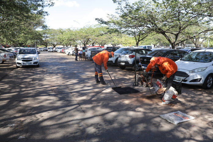 “Fizemos operação no estacionamento do Hospital Santa Lúcia, na Asa Sul, um local onde passa ambulância o tempo todo. Seria praticamente impossível vir aqui com caminhão basculante, rolo compactador e todo o maquinário necessário para a massa asfáltica quente. Mas precisamos tapar os buracos, então a solução é aplicar o asfalto frio, que é bem mais prático e rápido de aplicar, sem prejudicar o acesso ao hospital”, esclareceu a chefe da Divisão de Manutenção e Conservação de Vias da Companhia Urbanizadora da Nova Capital (Novacap), Walquiria Marra.