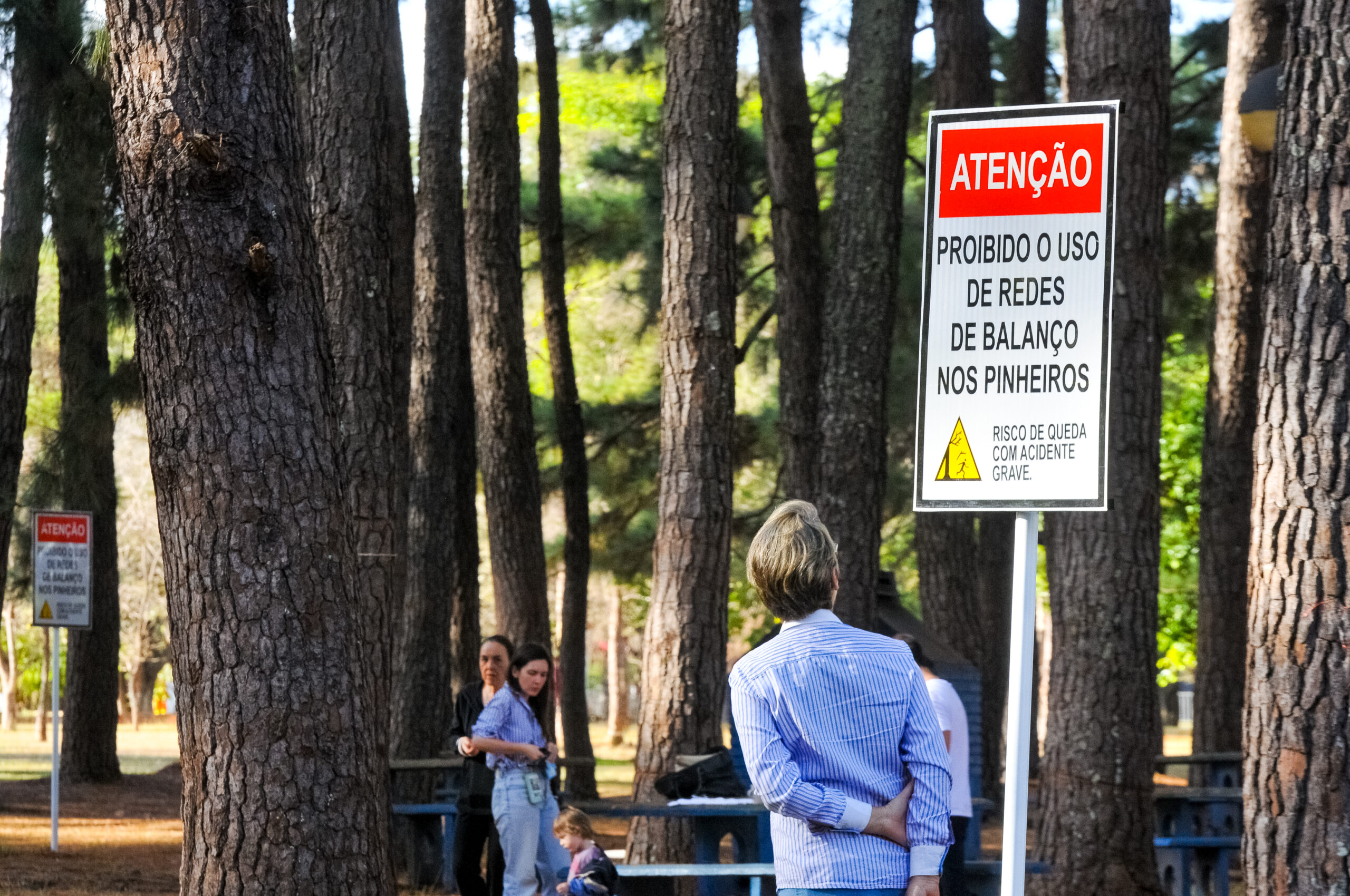 Quem visita a área dos pinheiros no Parque da Cidade certamente vai notar mudanças. Vinte e nove árvores que poderiam causar riscos foram erradicadas. Também foram instaladas 15 novas placas que advertem os visitantes sobre possíveis quedas de galhos ou de árvores na região, principalmente em caso de chuva e ventania, ou ainda devido ao uso de redes de balanço nos troncos.