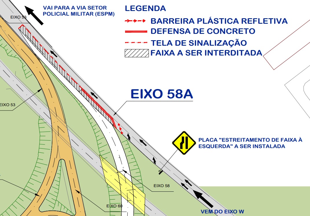 O trecho bloqueado tem cerca de 150 metros de extensão e terá início na intersecção da ESPM com o Eixo 58A. Dessa forma, os motoristas que acessam a via ESPM pelo Eixo W devem ficar atentos a possíveis impactos no trânsito.
