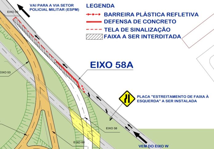 O trecho bloqueado tem cerca de 150 metros de extensão e terá início na intersecção da ESPM com o Eixo 58A. Dessa forma, os motoristas que acessam a via ESPM pelo Eixo W devem ficar atentos a possíveis impactos no trânsito.