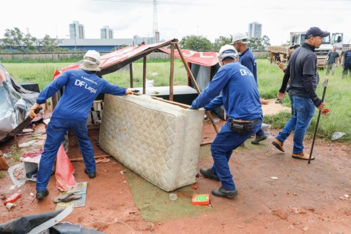 As equipes removeram os cinco barracos de madeira que restaram na área. Sob coordenação da Secretaria de Proteção da Ordem Urbanística (DF Legal) e da Casa Civil, estiveram presentes representantes das secretarias de Desenvolvimento Social (Sedes-DF), de Saúde (SES-DF), de Desenvolvimento Econômico Trabalho e Renda (Sedet-DF) e de Justiça e Cidadania (Sejus-DF). O Departamento de Trânsito (Detran) e a Polícia Militar do DF também deram apoio logístico à operação.