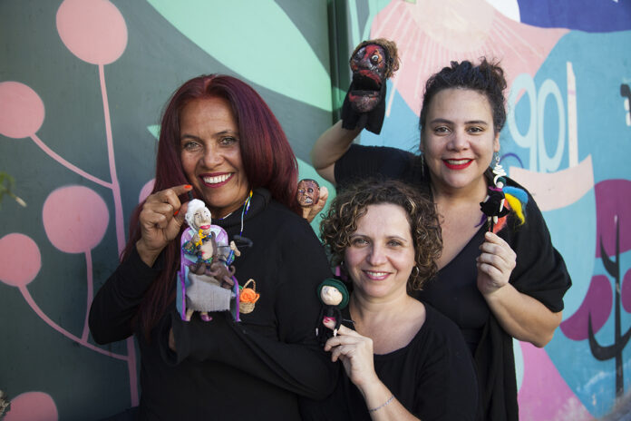 Amara Hurtado, Jirlene Pascoal e Mariana Baeta integram a companhia As Caixeiras Cia de Bonecas | Foto: Divulgação/Tatiana Reis