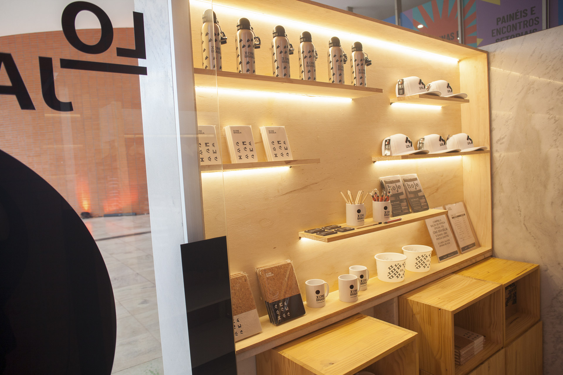 O Cine Brasília está com uma linha exclusiva de souvenirs, que vão desde camisetas e bonés até canecas, garrafas e produtos de papelaria com a nova logomarca do espaço, que imprime a singularidade da arquitetura modernista, desenvolvida pelo escritório de design Manufatura.