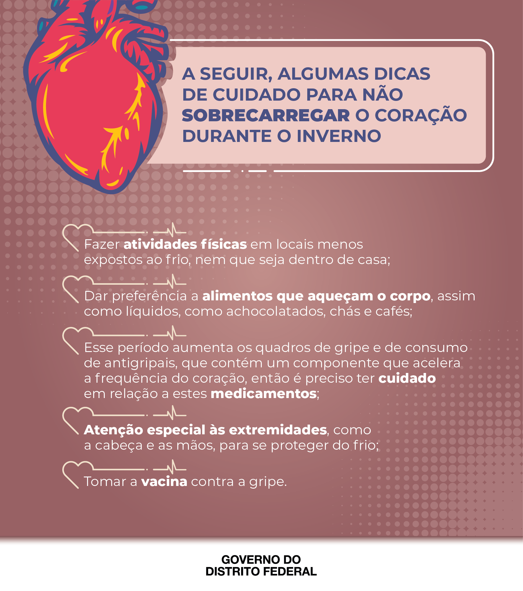 No inverno, o coração precisa, além de afeto e muito amor, de cuidados para a prevenção de doenças. O Departamento de Informática do Sistema Único de Saúde (SUS), vinculado ao Ministério da Saúde, aponta que, neste período do ano, o frio é responsável por um aumento de 20% dos casos de doenças cardiovasculares.