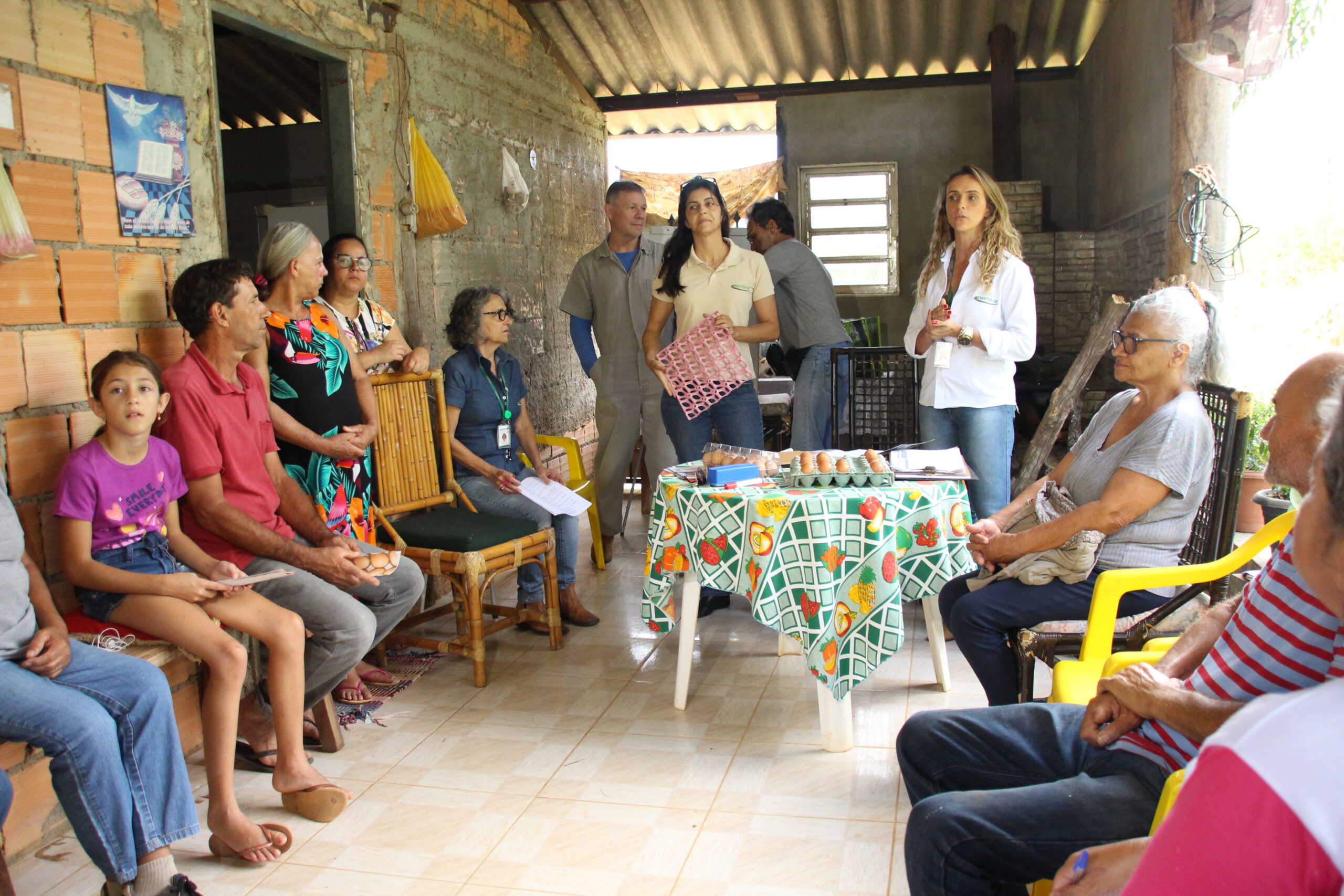 A oficina aconteceu na propriedade da produtora rural Maria Aparecida Martins, que no passado tentou a criação de galinhas poedeiras sem orientação técnica e não deu certo. Ela faz parte do grupo dos produtores de ovos caipiras do Assentamento 1º de Julho que está apostando nesse nicho. Atualmente, possui 24 galinhas e já pretende triplicar o plantel.