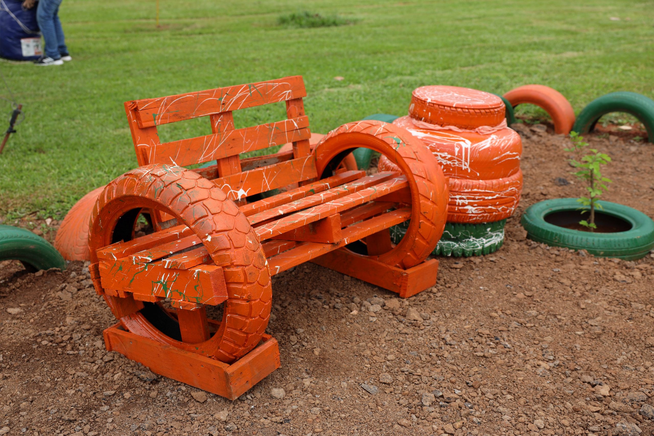 Nesta edição do projeto, também foram plantadas 30 mudas de plantas. O gari da catação Cristiano Freire, que é artista em reaproveitamento de recicláveis, utilizou cerca de 100 pneus para a confecção de bancos e outros objetos para ornamentar o espaço.