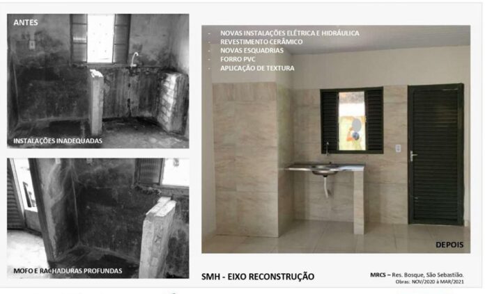Depois de conhecer o local, os profissionais elaboram o projeto arquitetônico a ser colocado em prática. “Da mesma forma que tem direito a assistência médica, a pessoa tem direito a esse tipo de atendimento”, ressaltou Sandra. O valor disponibilizado pela Codhab é de R$ 35 mil para obras de reforma e R$ 75 mil para obras de reconstrução.