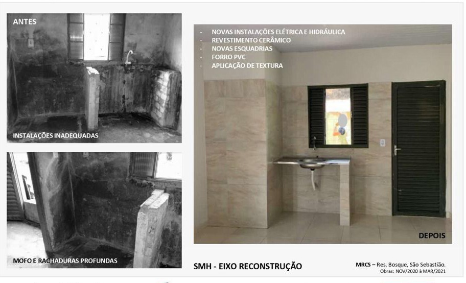 A meta agora é executar os 75 projetos pendentes e abrir novas vagas. As inscrições para solicitar reforma ou reconstrução de residência são feitas na página da Codhab. Os selecionados recebem a visita de uma equipe formada por engenheiro, arquiteto e assistente social.