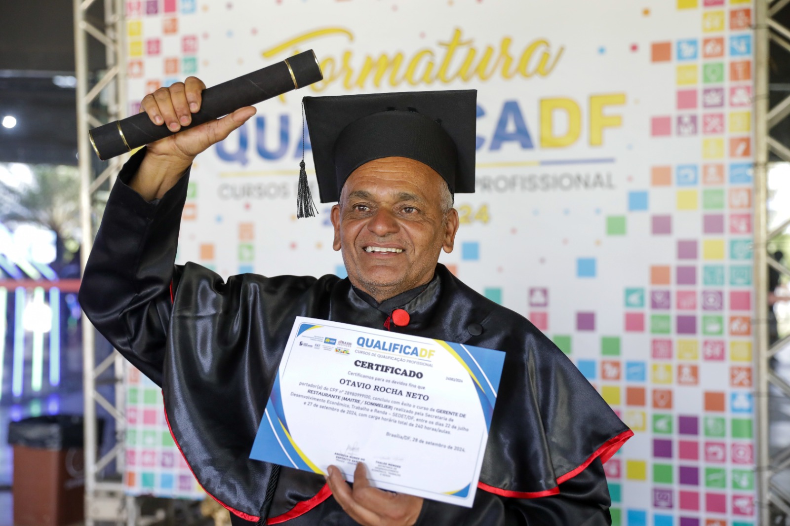 “Valoriza o lado humano e qualifica o lado profissional”, relata o autônomo Otavio Rocha Neto, de 61 anos. Junto de mais de 11,5 mil pessoas, ele foi um dos formandos do segundo ciclo de 2024 do programa QualificaDF. A solenidade de certificação ocorreu no Opera Hall, em Brasília, neste sábado (28).