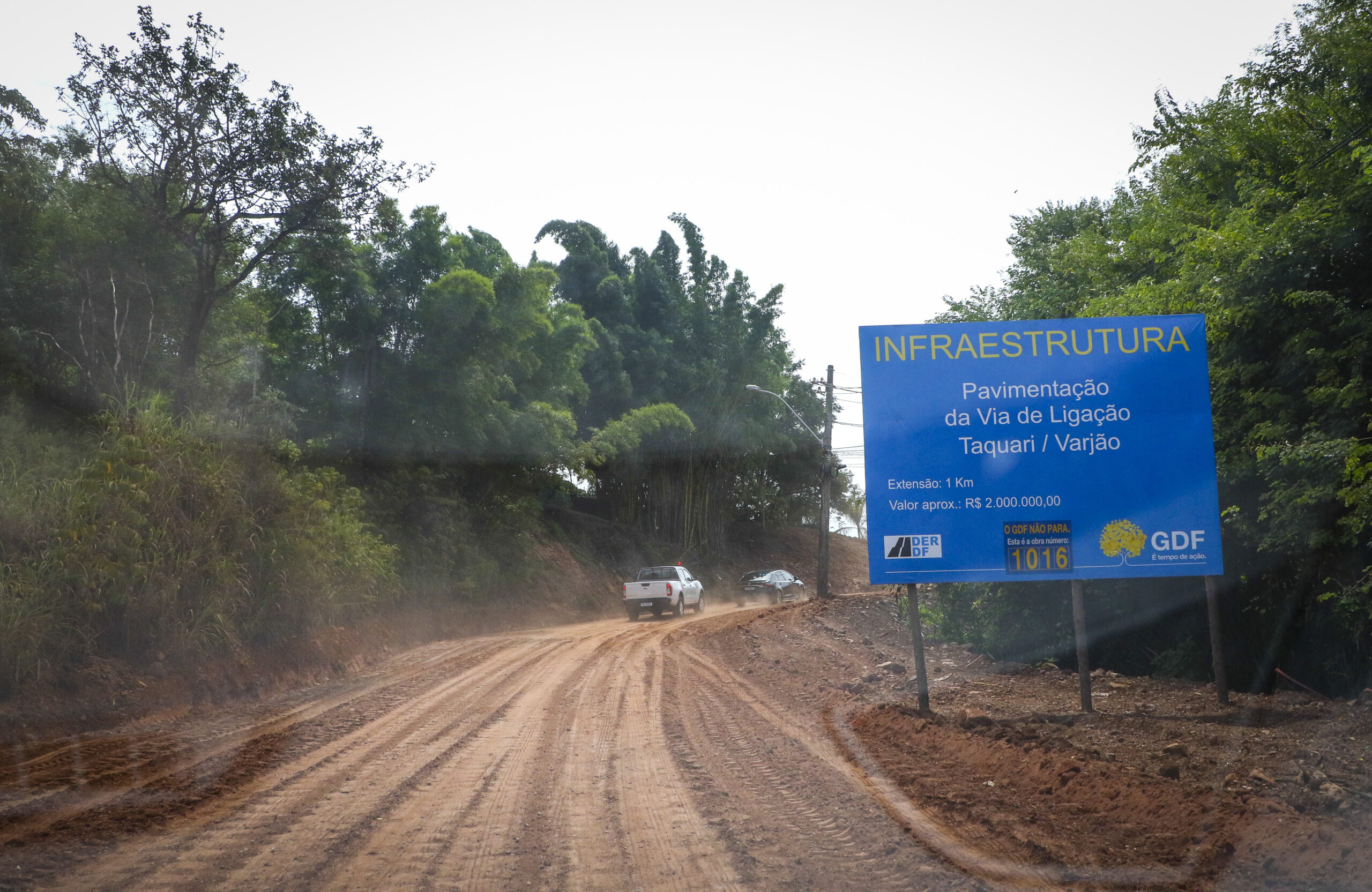 Segue com 60% de conclusão a obra de alargamento, drenagem e pavimentação de 1,2 km da via de acesso do Taquari à Estrada Parque Paranoá (EPPR), próxima ao Varjão. No início da tarde desta sexta-feira (18), o governador Ibaneis Rocha visitou o trecho onde os trabalhos estão sendo executados pelo Departamento de Estradas de Rodagem (DER).