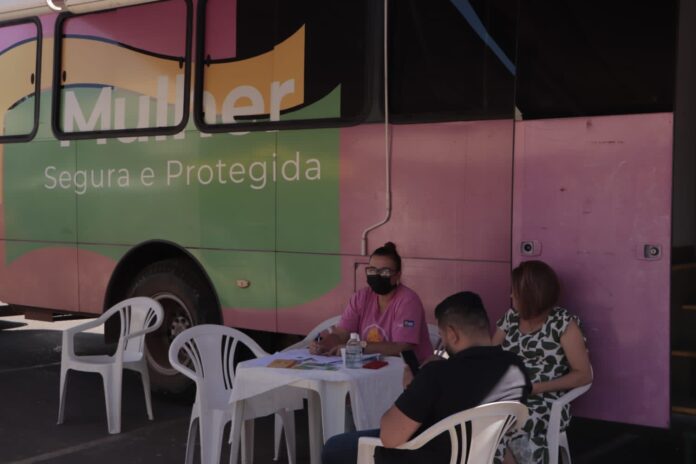 Equipe da Secretaria da Mulher vai estar com a unidade móvel para conversar com o público sobre enfrentamento à violência de gênero e para palestras sobre promoção da saúde da mulher e prevenção ao câncer de mama.