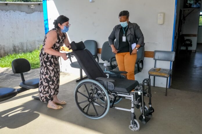 cadeiras de rodas, 2.500 aparelhos auditivos, 54 sistemas de frequência modulada e 1.029 órteses e próteses foram distribuídos pela Rede de Cuidados à Pessoa com Deficiência em 2022