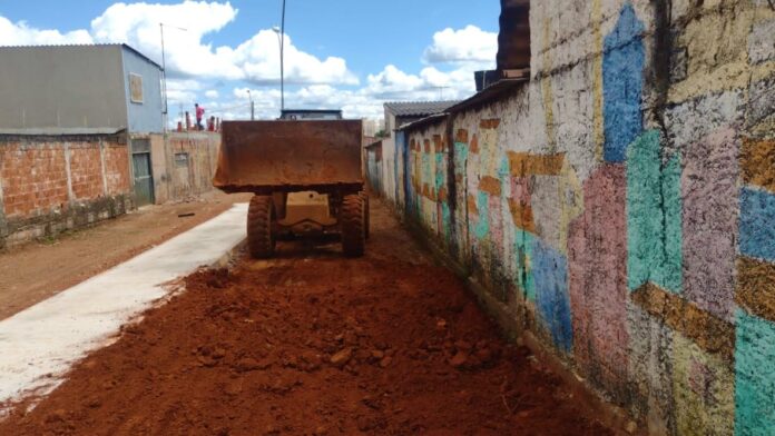 Cerca de oito pessoas trabalham no beco do Conjunto D da QNM 36, entre funcionários e reeducandos, boa parte recrutados pela administração local junto às secretarias de Administração Penitenciária (Seape) e de Justiça. Depois que máquinas limparam e fizeram o nivelamento do terreno, foi iniciada a construção de uma calçada de 55 metros de comprimento por 1,5 metro e meio de largura. “Eles trabalham rápido, a gente vê pelo tempo que levaram na reforma de outros becos aqui perto”, destaca a moradora Chris Borges, se referindo ao Conjunto J da QNM 36, já pronto. “É que a chuva não dá trégua, mas quando eles pegam o serviço, sai a jato e bem feito”, elogia.