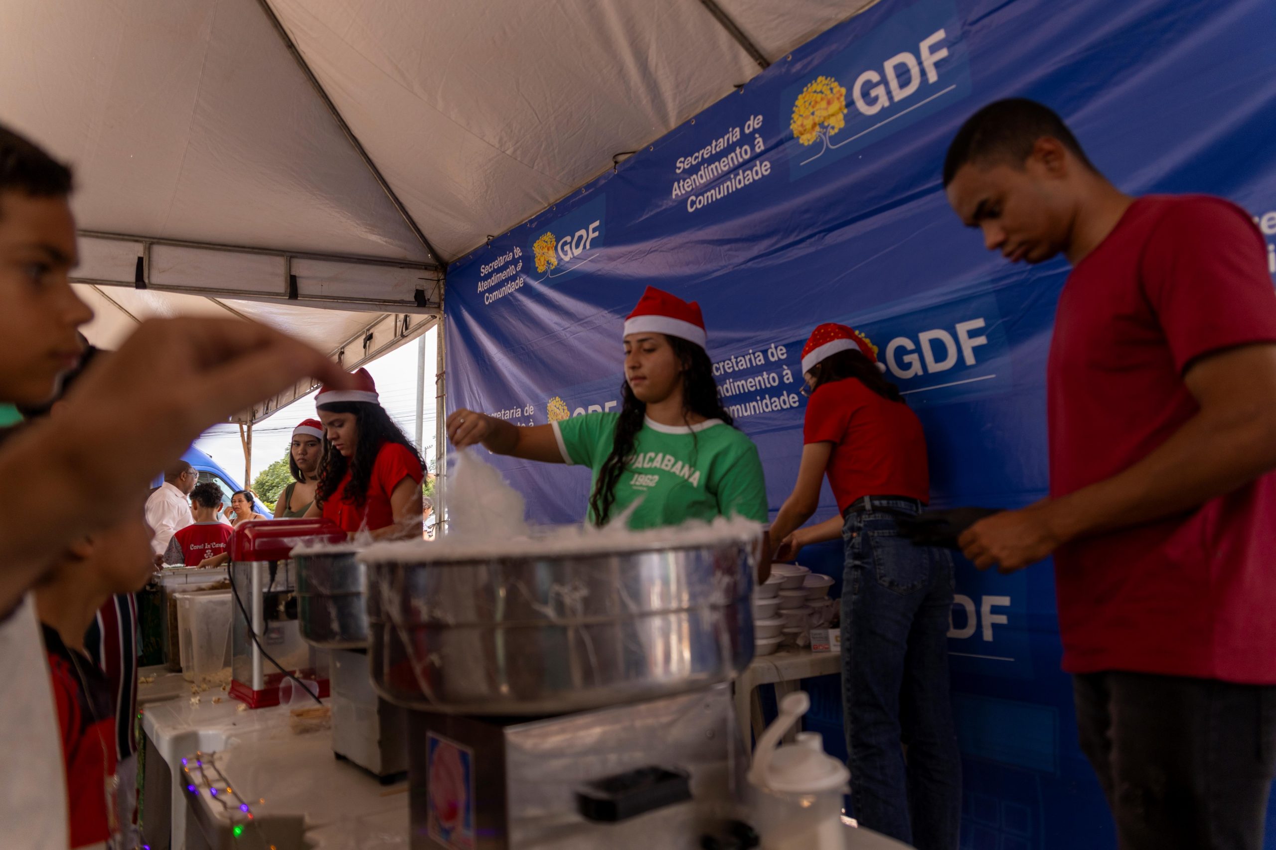 Durante a celebração do Natal no Restaurante Comunitário de Samambaia, houve distribuição de algodão-doce e de presentes para as crianças