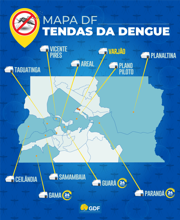 A tenda com o maior número de assistências nas últimas 24 horas foi a de Planaltina, com 208 atendimentos, seguida pelas do Paranoá (146), Ceilândia (132), Taguatinga (122), Samambaia (109), Gama (109), Guará (101), Plano Piloto (95), Areal (89), Vicente Pires (61) e Varjão (55).