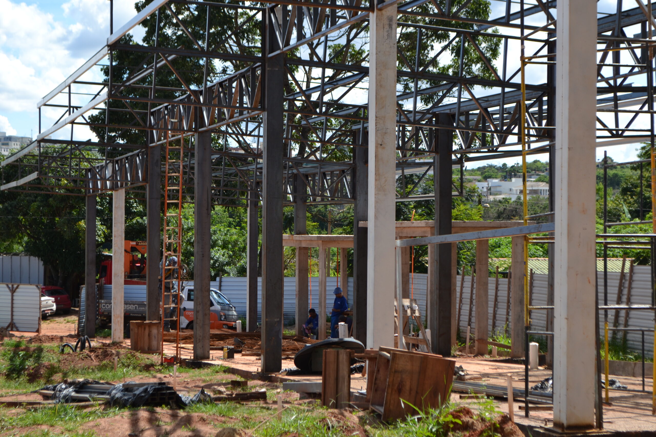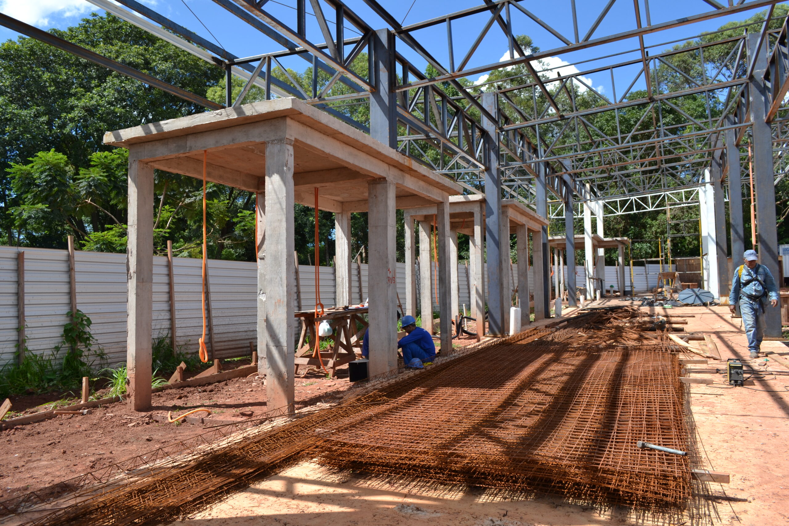 Quem passa pela Quadra 10 do Varjão encontra parte do novo terminal tomando forma. Acima dos tapumes é possível ver a estrutura de metal sendo finalizada e prestes a receber o telhado. Dentro da área cercada, já aparece a construção com seus pilares, vigas e lajes. Entre os próximos passos, está prevista a terraplanagem do estacionamento e a concretagem dos boxes, além das instalações elétrica, de água e de esgoto.