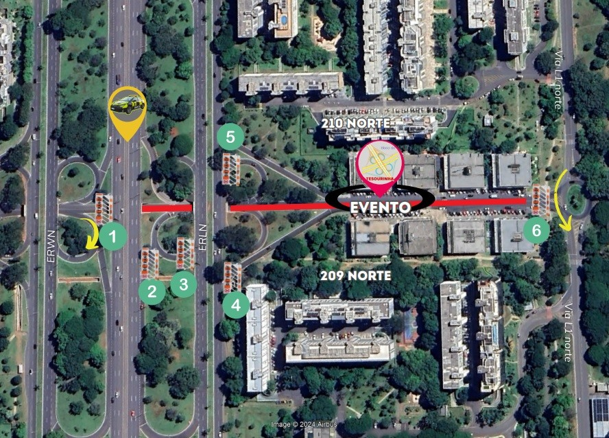 Haverá pontos de bloqueio na via de acesso ao local pelo Eixo Rodoviário Leste Norte (ERLN) e na L1 Norte. A via de ligação da Quadra 109 com a Quadra 209 será fechada na altura da tesourinha do Eixo Rodoviário Oeste (ERWN) – o “eixinho de cima”. Também estará fechado o acesso do Eixão para a tesourinha do ERLN.
