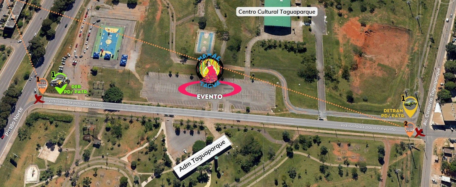 No sábado, no estacionamento do Centro Cultural no Taguaparque, será realizada a festa de Carnaval do bloco Mamãe Taguá, das 14h às 20h30. Em razão disso, as equipes do Detran farão o fechamento da via principal do Taguaparque, em frente à administração do local, a partir da meia-noite desta sexta (9). Os bloqueios ocorrerão na altura do acesso pelo Pistão Norte e no acesso pela Avenida Contorno Taguaparque.