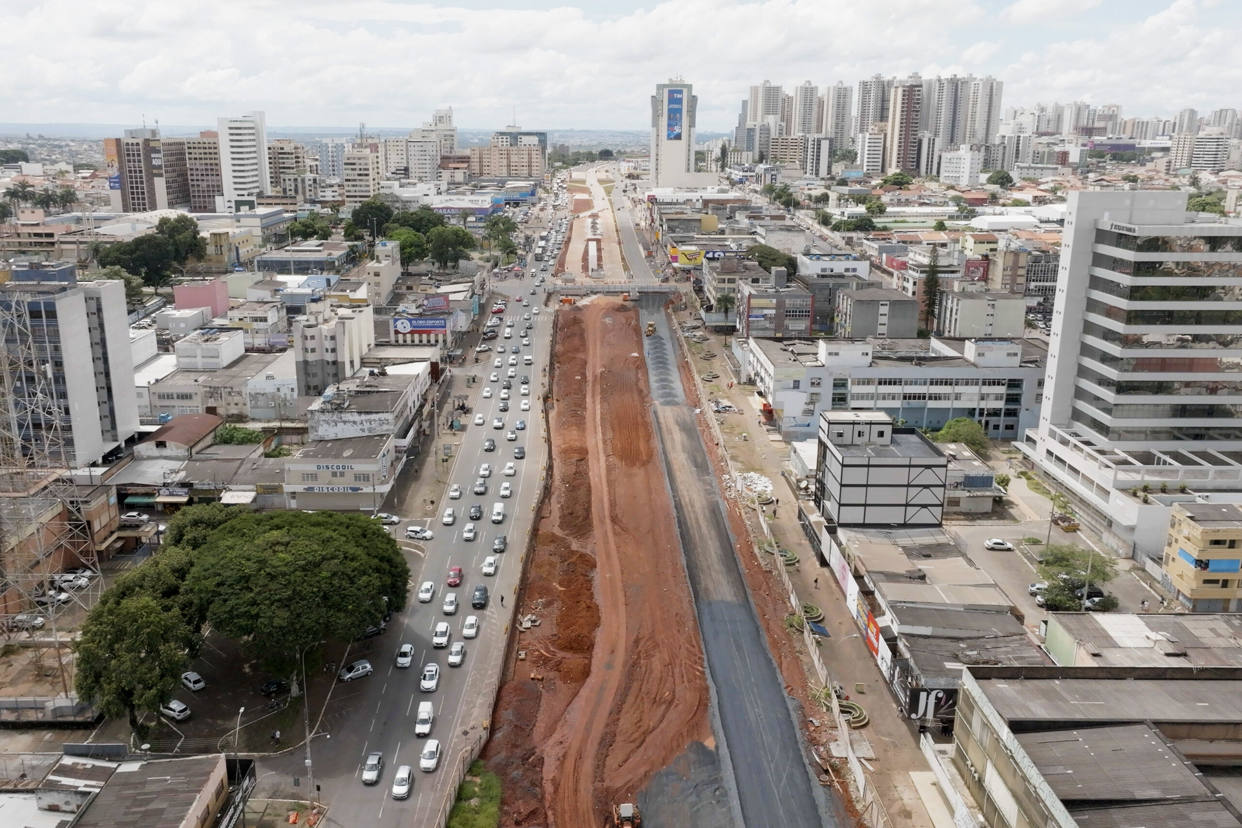 Com 520 m de extensão, o percurso que vai da Avenida Comercial à EPTG foi entregue em outubro do ano passado. De acordo com o engenheiro civil José Alfredo Aguiar, no trecho que segue em obras, a pista recebeu uma camada de brita graduada simples (BGS). A mistura de pó com brita é usada como base para pavimentos.