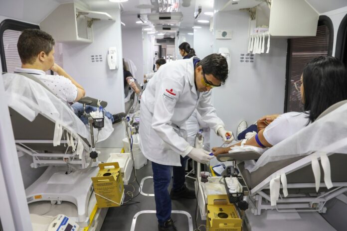 Em 2023, a unidade móvel contabilizou 1.071 bolsas de sangue coletadas. O atendimento itinerante para quem não pode se deslocar até o Hemocentro colaborou para o aumento na quantidade de doações feitas no ano passado. Em 2022, a média de coletas realizadas mensalmente era de 4,6 mil. Já em 2023, esse número subiu 6,5%, registrando uma média de 4,9 mil doações por mês.