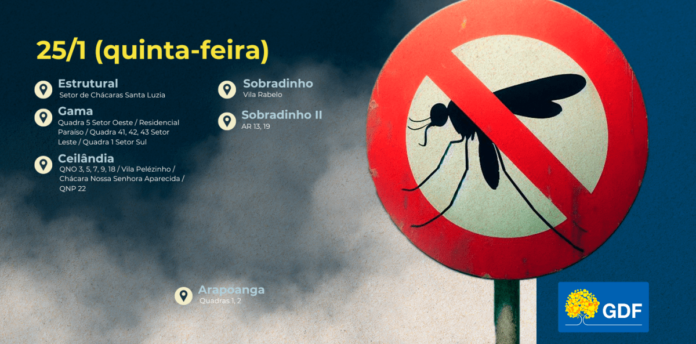 Mais cinco regiões administrativas recebem ação preventiva nesta quinta-feira; recomendação é que as pessoas abram portas e janelas quando passar o veículo de aplicação do inseticida de ultrabaixo volume (UBV)