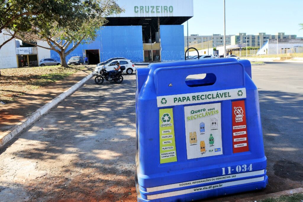 Azulzinhos e descolados, os papa-recicláveis ou os Locais de Entrega Voluntária, os LEVs, são aqueles equipamentos plastificados oferecidos para os moradores que não têm coleta seletiva na porta de casa ou para quem mora em condomínio que não aderiu à separação dos resíduos em contêineres. Ao todo, são 241 desses compartimentos distribuídos pelo DF, 35 deles só em Taguatinga.