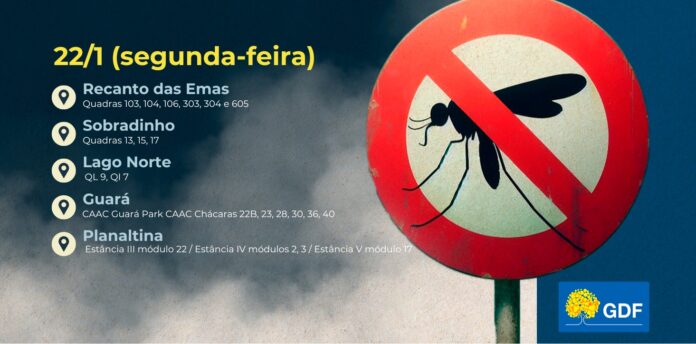 Ação de combate à dengue será realizada em endereços de cinco regiões administrativas; população deve abrir portas e janelas ao perceber a aproximação do veículo