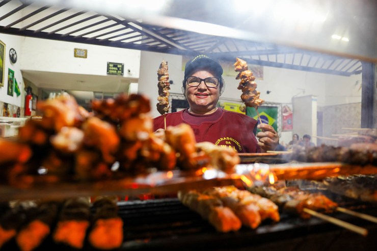 O cheirinho de comida boa toma conta diariamente do Churrasquinho da Wal, na QI 8 do Guará. Com mais de 16 anos de história, o local é comandado pela cozinheira Walnise Amorim da Silva Costa, 54, e serve o melhor da comida brasileira – a jantinha. Composta por espeto de churrasco, arroz, feijão tropeiro, vinagrete e mandioca cozida, a refeição é conhecida pela praticidade e custo-benefício.