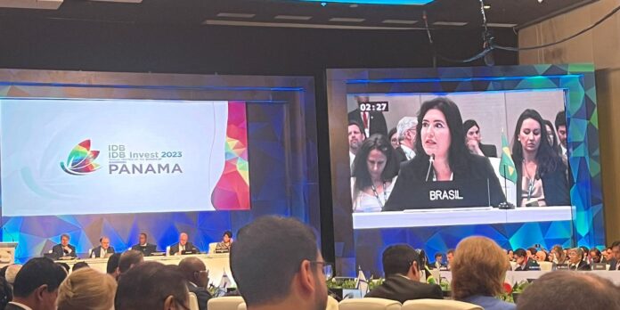 Durante sua primeira participação na assembleia anual do Banco Interamericano de Desenvolvimento (BID), que ocorre no Panamá até este domingo (19), a ministra do Planejamento e Orçamento, Simone Tebet, reafirmou o compromisso do governo do presidente Luiz Inácio Lula da Silva com políticas sociais de inclusão, eliminação da pobreza, equidade e com a determinação do governo brasileiro em transformar a economia do país para que seja mais verde e aumentar a produção com desmatamento ilegal zero.