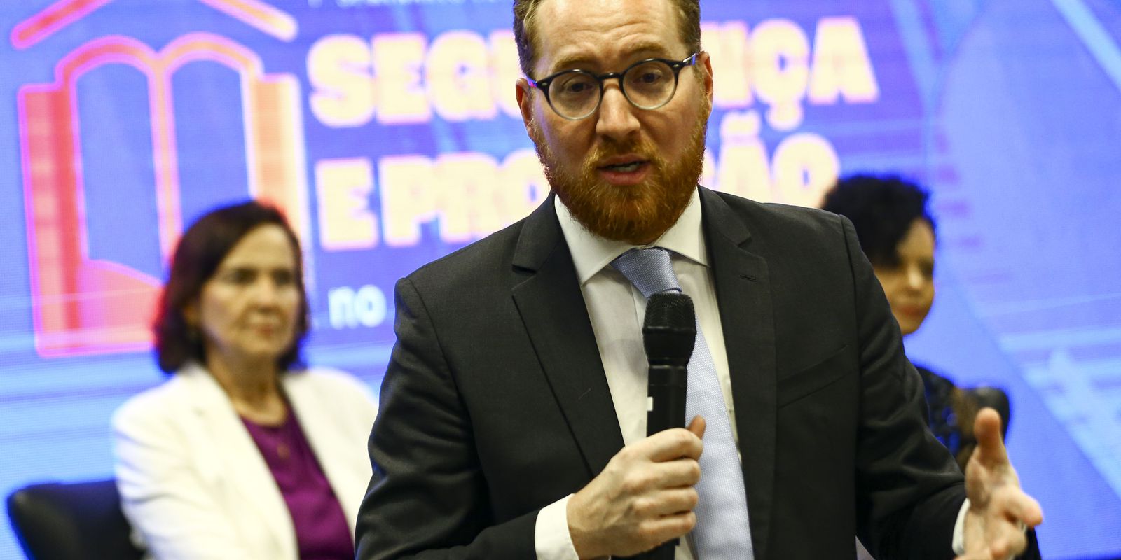 De Ângelo foi um dos participantes de uma das mesas de debate do 1º Seminário Internacional sobre Segurança e Proteção no Ambiente Escolar, sobre perspectivas de proteção no ambiente escolar.