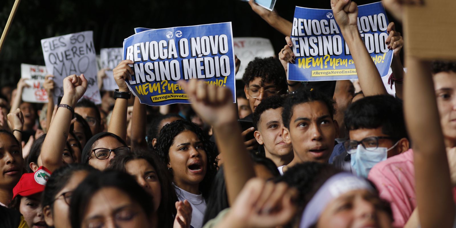 Organizações estudantis fizeram nesta quarta-feira (15) um ato pedindo a revogação do novo ensino médio. A lei de 2017 estabeleceu um novo currículo que passou a ser implementado obrigatoriamente em 2022. Estudantes e professores se reuniram pela manhã na Avenida Paulista, em frente ao Museu de Arte de São Paulo (Masp), e saíram em passeata em direção à Assembleia Legislativa do Estado de São Paulo.