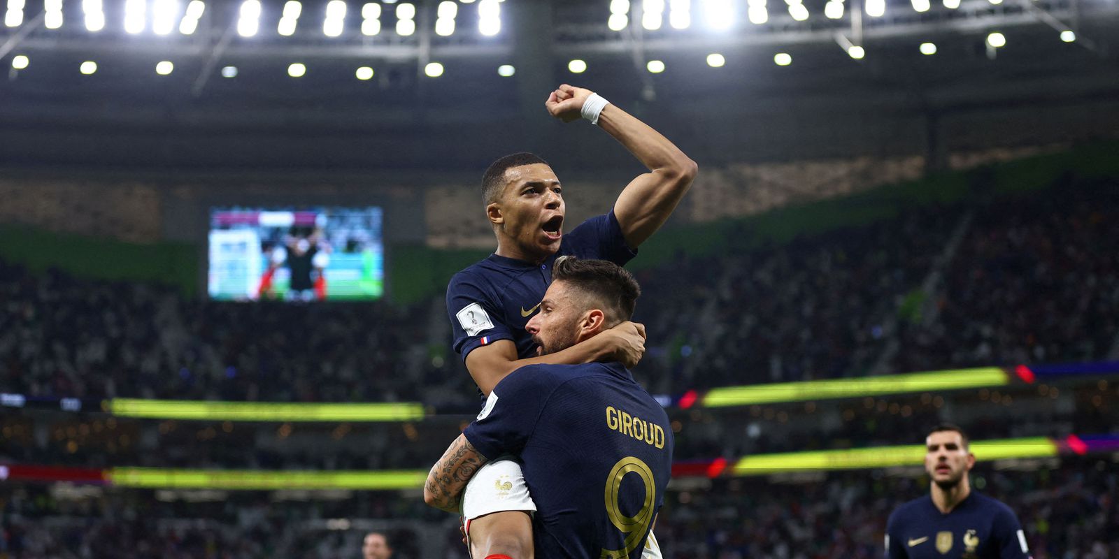 Os gols marcados no duelo deste domingo alçaram ambos os atacantes ao primeiro posto de uma determinada lista de artilheiros: Olivier Giroud chegou aos 52 com a camisa da seleção, superando Thierry Henry e se tornando o jogador que mais marcou pela França na história, já Mbappé pulou para cinco nesta Copa, abrindo dois de frente na artilharia da competição, enquanto acumula nove gols em duas participações em Mundiais.