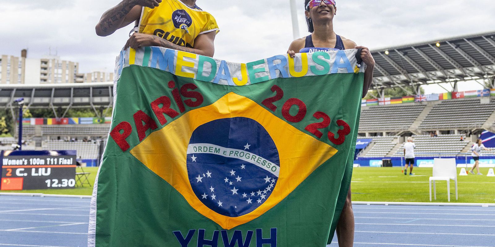 “Estamos aqui porque fazemos o que a gente ama. É meu bicampeonato mundial nesta prova, só tenho a agradecer. Os 100m são muito técnicos, não pode errar em nada, temos que estar atentos, pois qualquer descuido podemos perder por milésimos. Mas deu tudo certo”, afirmou Jerusa que correu ao lado do guia Gabriel Garcia.