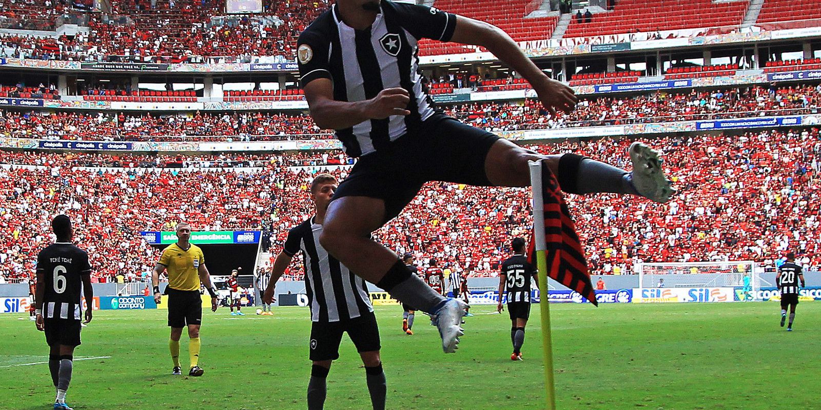 O Botafogo venceu o Flamengo por 1 a 0 na manhã deste domingo (8) no estádio Mané Garrincha, em Brasília, pela quinta rodada do Campeonato Brasileiro. O gol do jogo foi marcado pelo atacante Erison aos cinco minutos da etapa final. Aproveitando um erro do volante Willian Arão e do próprio goleiro Hugo, o botafoguense chutou forte da entrada da área e definiu o placar.