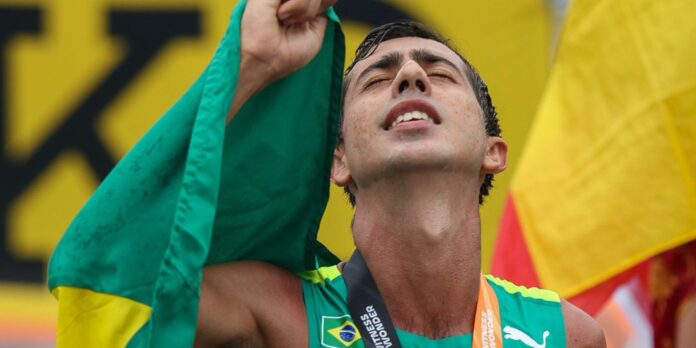 O atletismo brasileiro foi ao pódio no primeiro dia do Campeonato Mundial de Budapeste (Hungria). Neste sábado (19), Caio Bonfim conquistou a medalha de bronze na prova dos 20 quilômetros da marcha atlética. O brasiliense finalizou a disputa em 1h17min47s, estabelecendo o novo recorde nacional e ficando a 26 segundos de ter a melhor marca de um sul-americano na história.