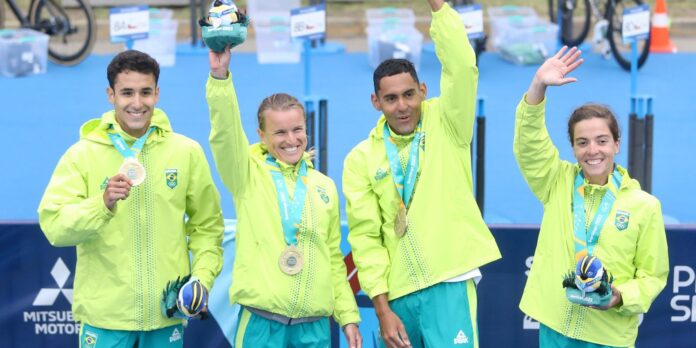 O Brasil estreou no topo do pódio pan-americano do revezamento misto de triatlo na última edição: Lima (Peru), em 2019.
