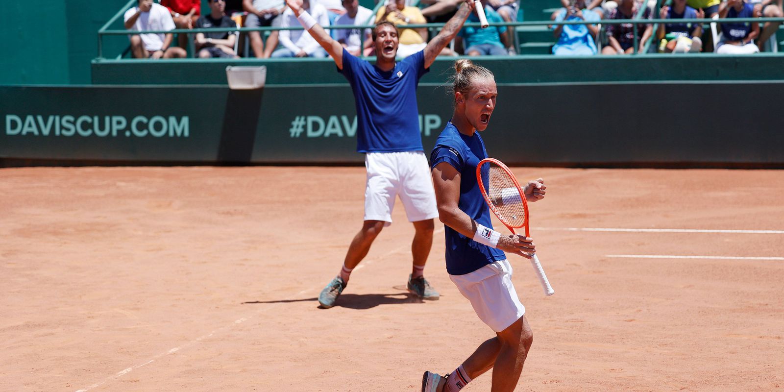 Depois de vitórias de Matheus Pucinelli e Thiago Monteiro na última sexta (3) nas simples, a equipe brasileira manteve o caminho dos triunfos neste sábado com Felipe Meligeni e Rafael Matos batendo Jie Cui e Ze Zhang por 2 sets a 0 (6/2 e 6/3) em 1h19min de partida.