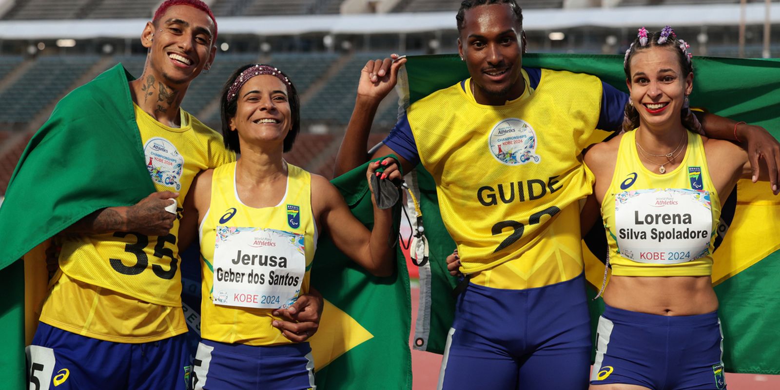 As brasileiras dominaram o pódio nesta terça-feira (21), quinto dia do Mundial de Atletismo Paralímpico, em Kobe (Japão). Teve dobradinha do país na prova dos 100 metros da classe T11 (deficiência visual), com tricampeonato da acreana Jerusa Geber e bronze da paranaense Lorena Spoladore. O segundo ouro do dia, com direito a recorde mundial, foi da baiana Raissa Machado, no lançamento de dardo F56 (atletas que competem sentados). Outro pódio duplo do Brasil foi nos 400m T12 (deficiência visual), com prata da capixaba Lorraine Aguiar e bronze da rondoniense Ketyla Teodoro.