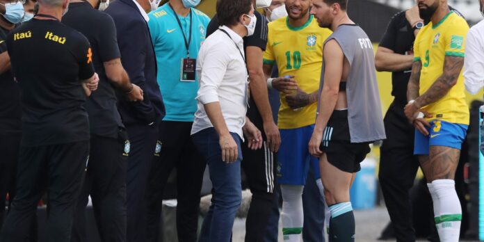 A partida pelas Eliminatórias para a Copa do Mundo foi suspensa cinco minutos após o pontapé inicial quando agentes da Anvisa entraram em campo por causa da participação na partida de quatro jogadores argentinos que descumpriram as normas sanitárias em vigor por causa da pandemia do novo coronavírus (covid-19).