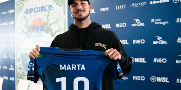 Para celebrar o Dia Internacional das Mulheres, @gabriel1medina escolheu usar o nome da Rainha Marta na sua lycra no #MeoRipCurlProPortugal. 🏄🏽♂️🤝⚽️ #IWD2023